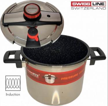 Olla Presión de Acero Inoxidable Y Marmol de piedra antiadherente adaptable para todo tipo de fuegos . Disponible en medidas 4L/6L/8L/